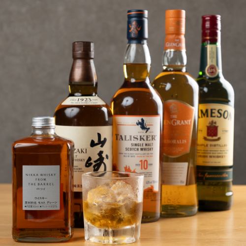 当店では、ジャパニーズウイスキーからスコッチ、バーボンまで、国内外の銘酒を厳選。高級銘柄から気軽に楽しめる一杯まで、幅広いラインナップをご用意しており、ウイスキー初心者の方も安心です!迷ったときは、ウイスキーに精通した店長が、お好みに合わせご案内します。ぜひ、お気に入りの一杯をお楽しみください!
